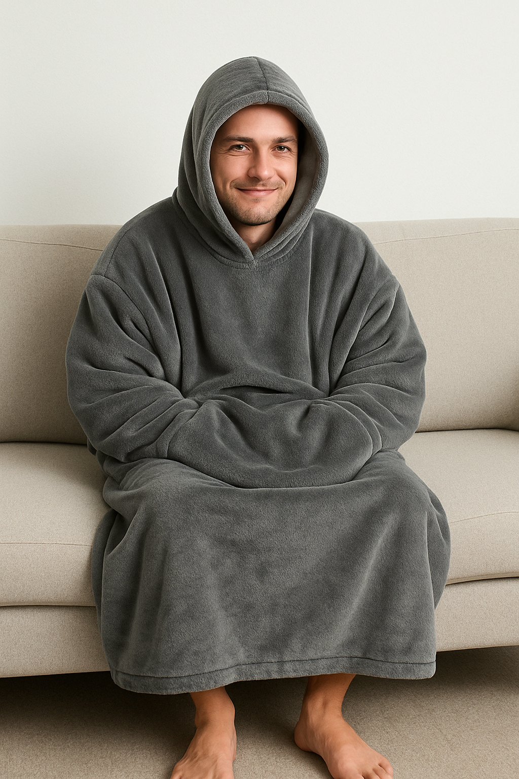 Naše mikinová deka je oversize – univerzální velikost vhodná pro všechny postavy.